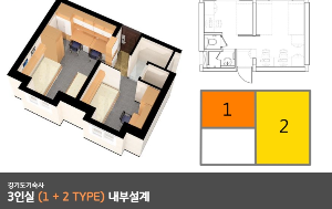 ◼ 기숙사의 3인실은 1인실과 2인실로 구분됩니다.