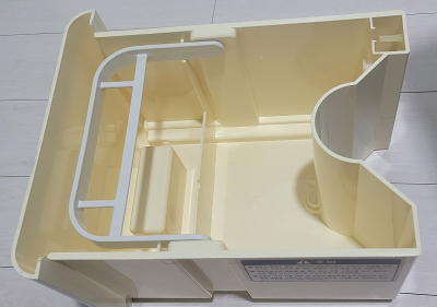 4. 물 때가 낀 물통도 빼내어 과탄산소다와 따뜻한 물을 부은 후 30분~1시간 정도 있다가 깨끗하게 헹군 후 물기를 닦아내거나 말려줍니다. 물 때가 끼지 않았다면 따뜻한 물로 헹궈주거나 중성세제만을 이용해서 청소해 줍니다.