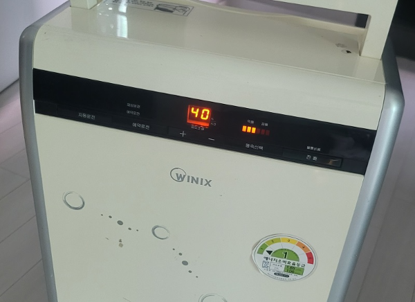 집에서 사용하고 있는 위닉스 제습기 DHH-109BNS 입니다. 누렇게 변한 외형만 보아도 알 수 있듯이 연식이 오래된 제품으로 정확히 기억은 나지 않지만 족히 10년은 넘은 제품이에요. 하지만 아직도 정상적으로 잘 작동을 하는 제품입니다.