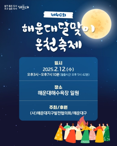 ⭕ 행사 내용 : 달집 기원제, 소원문 쓰기, 해운대 온천 족욕탕 운영, 축하공연, 노래자랑, 달집태우기, 부채춤, 강강술래등