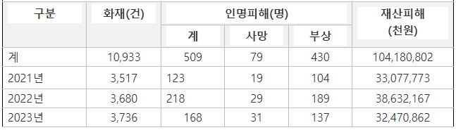 소방청 국가화재정보센터에 따르면 최근 3년 간 내연기관 차량화재는