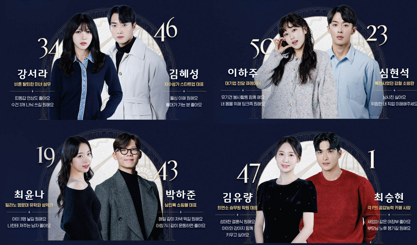 실제 커플매니저들이 출연하여 커플들의 매칭 성사에 조언자 역할을 하고 있습니다.