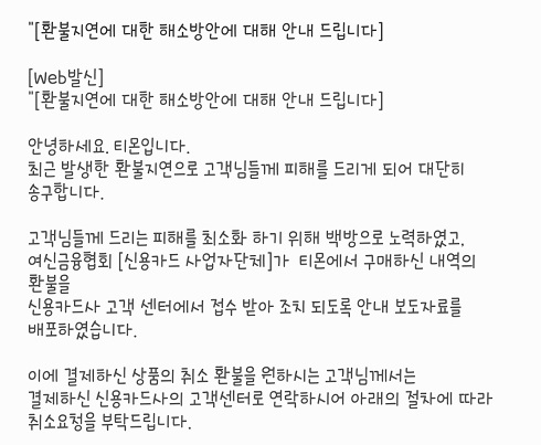 티몬 환불때문에 신한카드에 결제 취소 요청 신청은 해놓았지만, 이 또한 뭔가 후련하지는 않네요. 확실하게 취소 결과가 나와야 안심이 될 것 같습니다. 그래도 티몬에서 카드로 결제하고 취소가 되지 않는 분들은 사용하신 카드사에 직접 문의해보시면 좋을 것 같습니다.