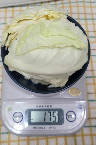 집에 있는 사과 하나를 잘라보니 정확하게 175g 이 나와서 양배추도 동일한 무게로 준비하였고, 당근은 사과와 양배추 무게의 반인 87g을 준비하였습니다. CCA 주스 비율은 당근:양배추:사과=1:1:1 혹은 0.5:1:1 중 입맛을 고려하여 정하는 것도 나쁘지 않은 것 같습니다.