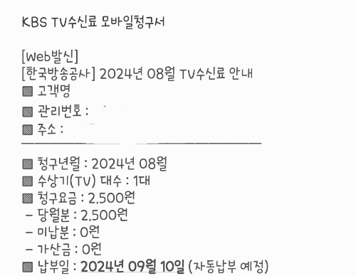 그동안 전기 요금에 합산되어 청구되었던 KBS TV 수신료가 2024년 7월부터 분리 징수되고 있습니다. TV 수신료 모바일 청구서를 받아보니 TV 수신료 2,500원이 청구된 것을 알 수 있었는데요. 기존에 전기요금을 납부하던 방식과 동일하게 납부하게 됩니다. 한전의 전기요금에서 분리 징수된 TV수신료는 조건이 맞으면 필요에 따라 해지 요청을 할 수 있습니다.